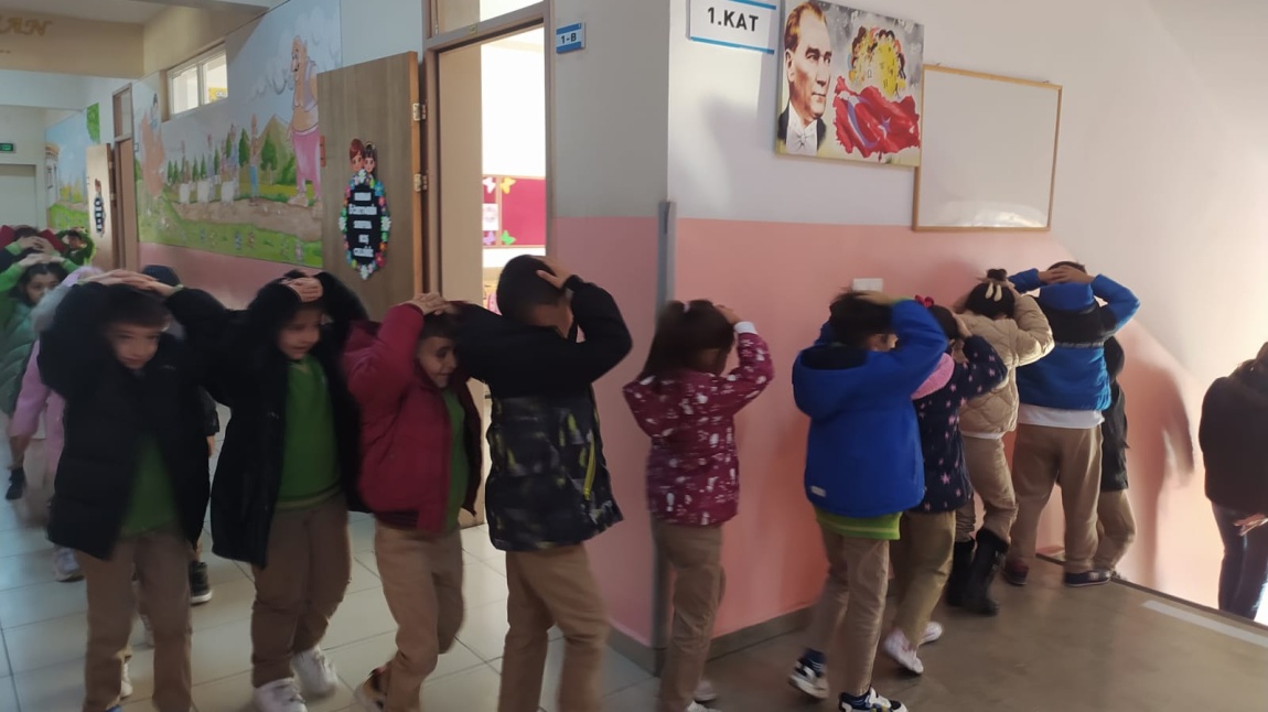 10.05 SAATİNDE TÜM TÜRKİYE GENELİNDE YAPILACAK OLAN DEPREM TATBİKATIMIZI YAPTIK.SİREN SESİ VE BİLGİLENDİRİCİ UYARININ ARDINDAN ÇÖK KAPAN TEKNİĞİNİ KULLANARAK SIRALARIN ALTINA ÇÖKEN ÖĞRENCİLERİMİZ TAHLİYE PLANINA UYGUN OLARAK SIRA HALİNDE OKULUN DIŞINA TAHLİYE EDİLDİ.TOPLANMA ALANINDA TOPLANAN ÖĞRENCİLER TATBİKATIN BİTMESİNİN ARDINDAN SINIFLARINA ALINDI.